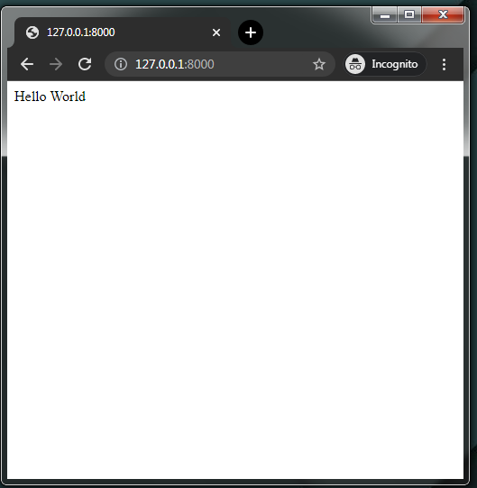 Now if you start the server and visit the default URL i.e http://127.0.0.1:8000, you will see a simple HTTP message Hello World.