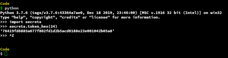 This should generate a secret key that only you know now. So, just copy the key without the quotes and create a file .env in the root project folder.