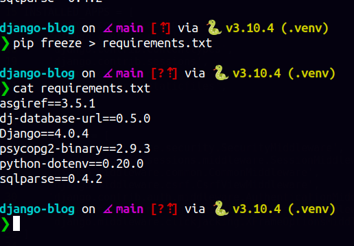 Make sure to update the requirements.txt file before pushing the project to Heroku for making sure everything works as expected. Since we have installed a few additional packages that are directly used in the settings.py file, we need to run the pip freeze command to update the requiremnets.txt file.