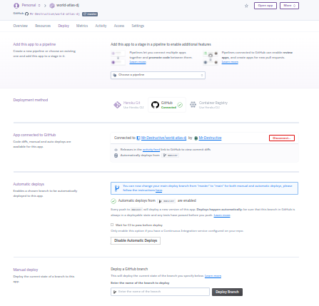 Below is a screenshot of my previous project deployed to Heroku using a GitHub repository.