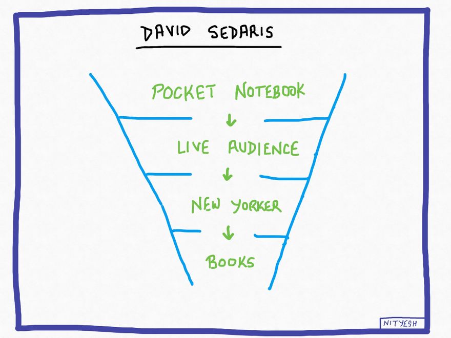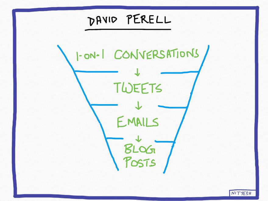 David Perell, the young "Writing Guy", explains his funnel for developing ideas as such: