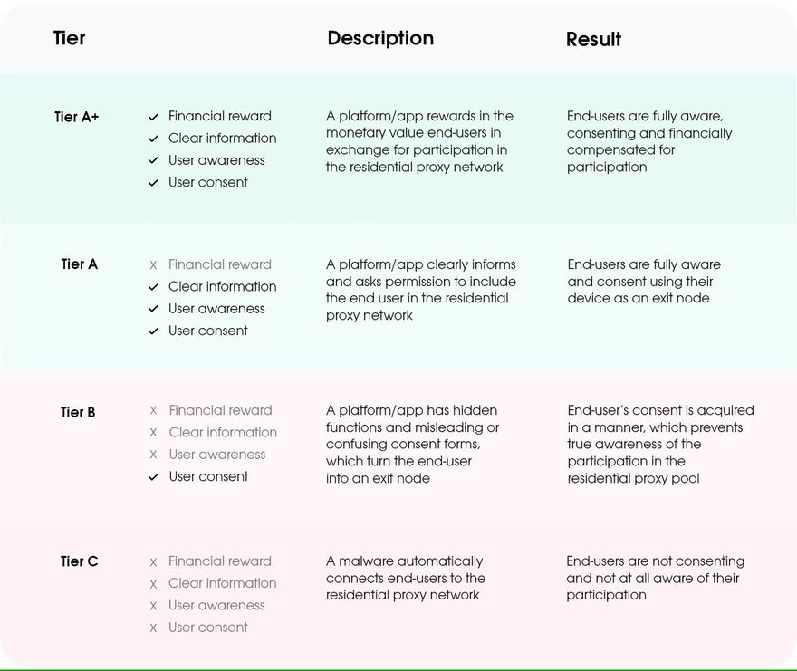 Oxylabs has established a grading system for all non-ISP residential proxy