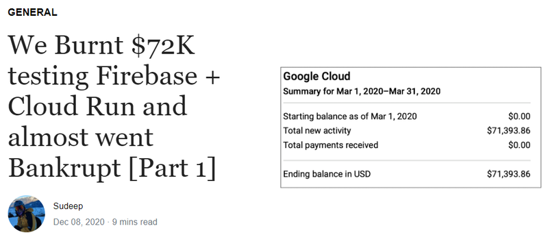 First: It's important to note-- in both of these cases, the developers were able to work with Google who investigated their cases and ultimately forgave the entirety of their outstanding debts. In Colombia back in 2018, the Google Developers Latam team apparently gave Vaki a "grant" that squared the bill. And for the Milkie Way guys, as a "one-time gesture," Google granted them clemency. (Disclaimer: I am personally not affiliated with Google.) But my personal take: Behind Apple and Microsoft, Google is a $1 trillion tech company. And while $30k or $72k may seem a lot to peons like you and me-- my guess is that if you are in good faith just learning how to program the first time but do accidentally really screw something up, Google will (I believe) likely work with you.