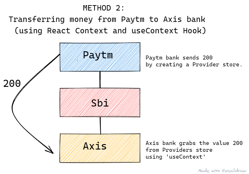 Goal: Send money from Paytm -> Axis bank without transferring the money through Sbi by using React Context.
