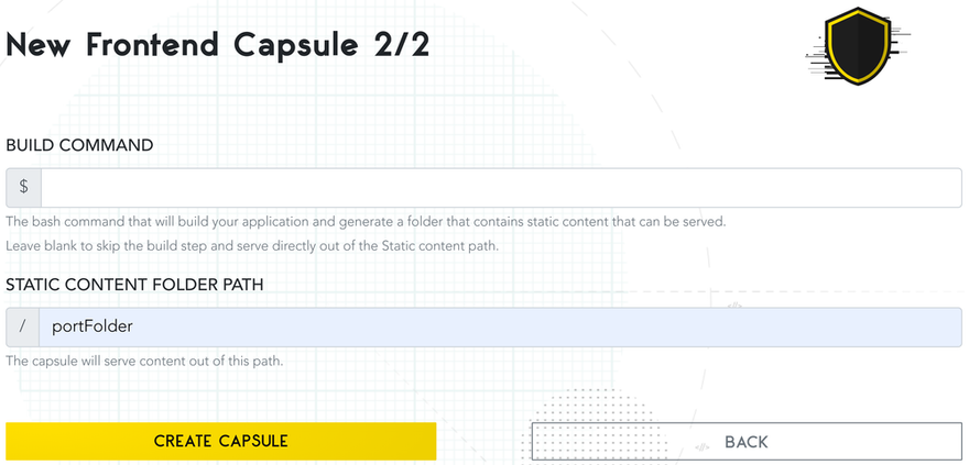 You'll be prompted to choose a Capsule type – our portfolio contains only front-end code, so choose a "Frontend" Capsule and: