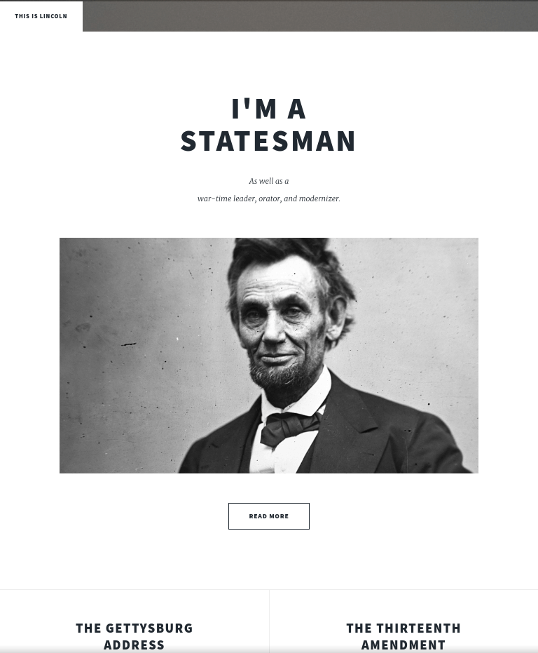 This tutorial will following the creation of a portfolio for Abraham Lincoln – the 16th president of the USA. We'll take a closer look at some things Abraham Lincoln wouldn't want in a portfolio – and maybe you too. The next few sections will cover how to modify the following elements of the portfolio template: