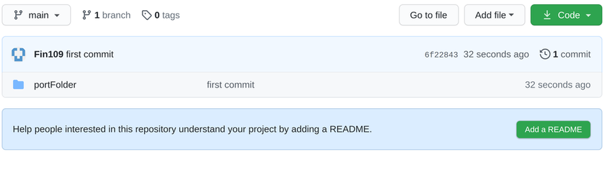 Now you can see the portfolio code in your GitHub repository. Your repository should look similar to the below, where all of your portfolio code is contained in a sub-directory (in this image, the sub-directory is "portFolder"):