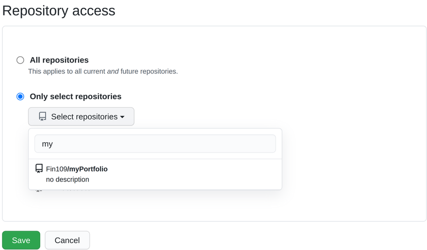- From the drop-down menu, type the repository's name containing your portfolio and select it.