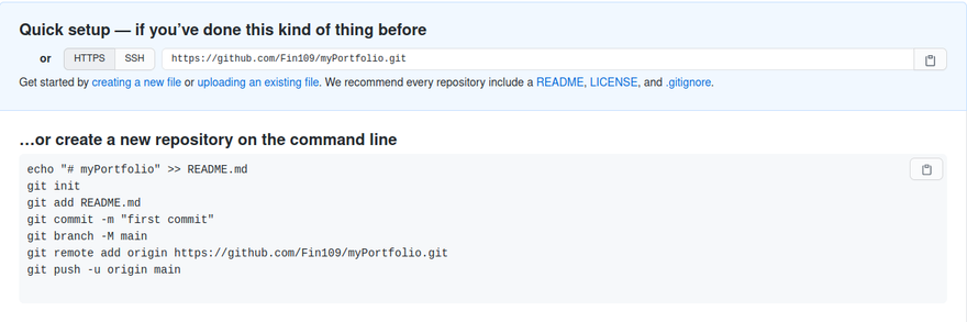 We've created the remote repository – now we need to push the portfolio to GitHub.