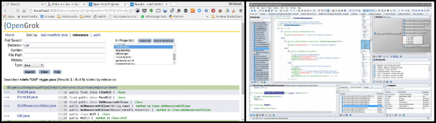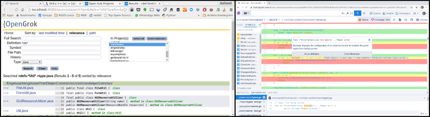 OpenGrok is one of the pioneers in code-search and navigation tools and was developed by Sun Microsystems back in 2004. OpenGrok has become an Oracle open-source project since Oracle acquired Sun. OpenGrok is written in Java and is still actively maintained.
