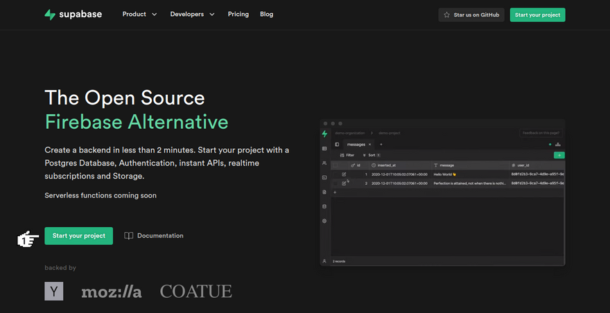 Supabase is an authentication service with simple tools to help developers build applications.