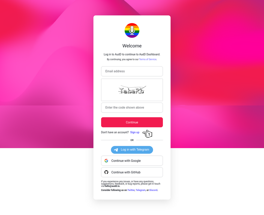 7. Ready! Your account was created and the token was generated. API documentation is available at https://docs.audd.io/.