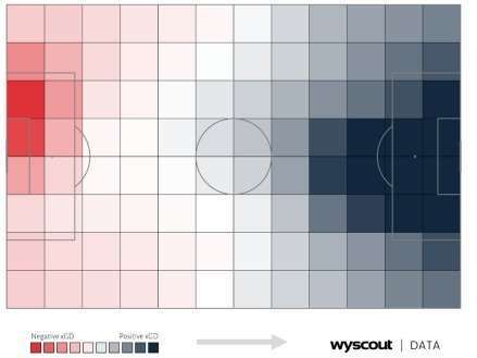 xGD difference from throw-ins (within 15 seconds) by the end location.