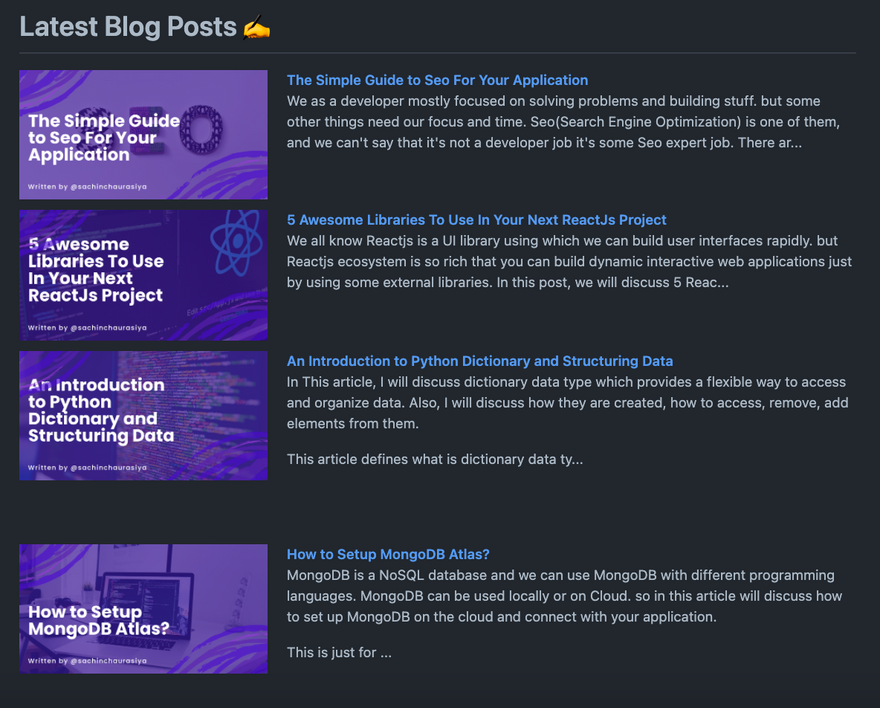 while sharing my content on other platforms I got a thought what if I can show my latest content on my GitHub profile? if people are visiting my GitHub profile and from there if they get to know my latest content that would be great right. so I started looking for how I can show my latest blogs on my GitHub profile. I found two solutions (two GitHub Actions) that we will be discussing in this article.
