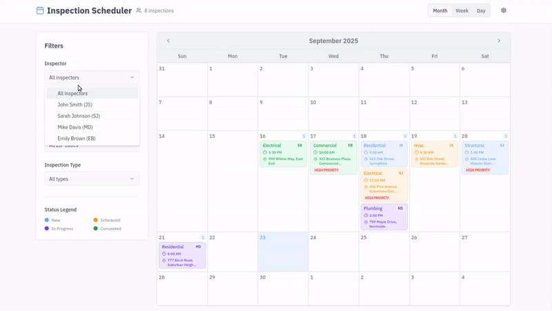 Let’s demonstrate how to build a scheduler that streamlines the home inspection process for real estate transactions, allowing agents, inspectors, and clients to coordinate appointments, track statuses, and manage property access.