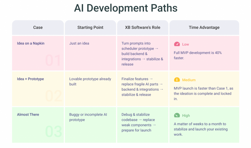 This approach gives you the best of both worlds: the unparalleled speed of AI for ideation and the guaranteed quality of expert developers for execution.