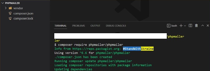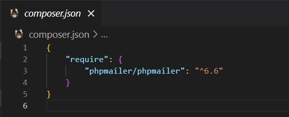 If the package is successfully added you should see the PHPMailer included in the composer.json file