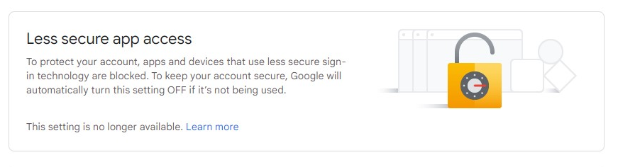 Prior to May 30, 2022, from your Google account security settings “Less secure app access” had to be turned on to send emails using PHPMailer. Since the “Less secure apps” feature that allows third-party software and devices to sign in to your Gmail account is no longer supported by Google you can choose the other more secure options available.