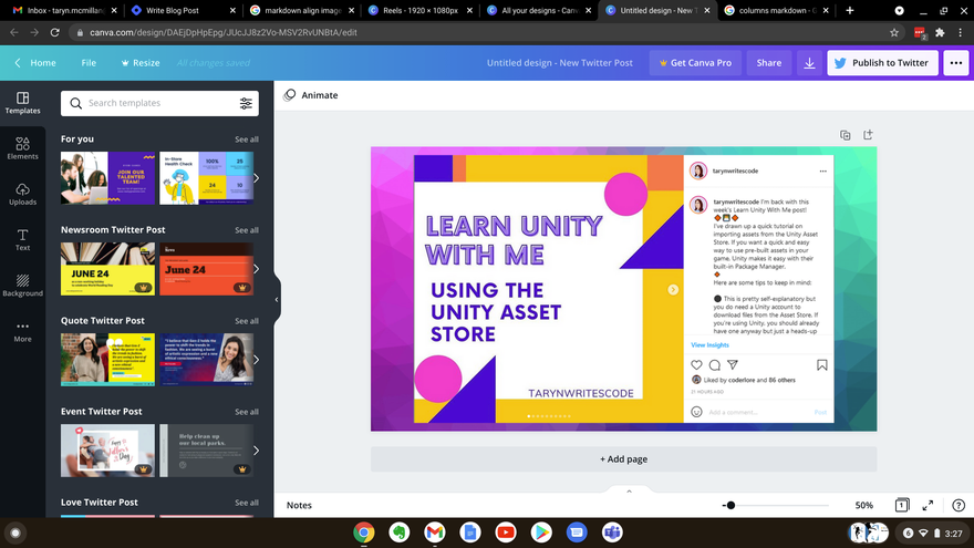 Working on a custom Instagram post in Canva is easy and free!