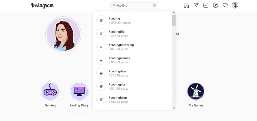 Do your research : I suggest typing in a root word such as coding or programming into the Instagram search bar. You'll get hashtag suggestions based on that word and you can usually see the number of posts using each hashtag this way.