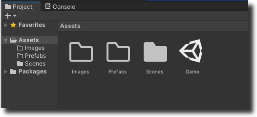 The Project Assets folder is located at the bottom of the Unity editor. Within this folder, you can see all of the assets which are included in your project. These can be assets that you have created, such as images or prefabs, as well as packages that you have downloaded from the Unity Asset Store. Assets which are in this folder are not automatically in your scene and must be added manually.