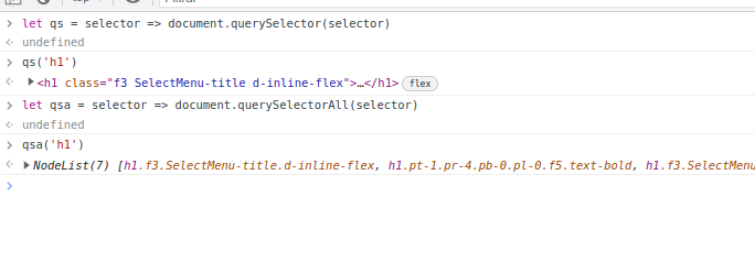var title = document.querySelector.?("h1");I'm not really understanding at all what you mean by libraries! Would you be down to break down for me what's happening in that function? I am very intrigued, it looks like you could plug "qs" and whatever class you wanted right in to that style property manipulation which would def save me time once set!