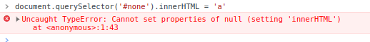 document.querySelectoris not null-safe: the function could returnnullorundefinedand the innerHTML could be a function error, or just use.?to be a safe null use (see Optional Chaining)Another piece of advice, is create a small library of functions: I see a lot of calls of