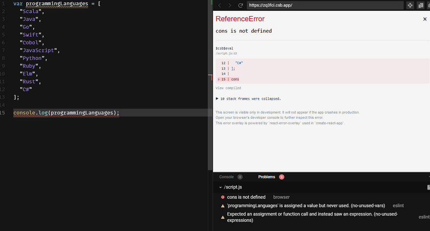 Codesandbox isn't working for me again today shakes fist which may be an extension of the issues that seem to have been affecting others and will hopefully be quickly resolved, but it is certainly making it hard to learn new things.