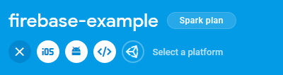Before we can use Firebase's services, we have to create a link between our page and Firebase. To do this, click the icon that looks like an html closing tag (third white-background icon from the left):