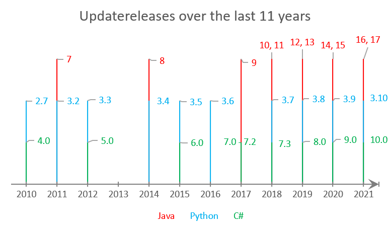 Fig.2 - Releases of updates for Java, Python and C# over the last 11 years