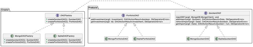The gist is that each concrete factory (MongoDB, Sqlite3, etc) implements the DAOFactory interface:
