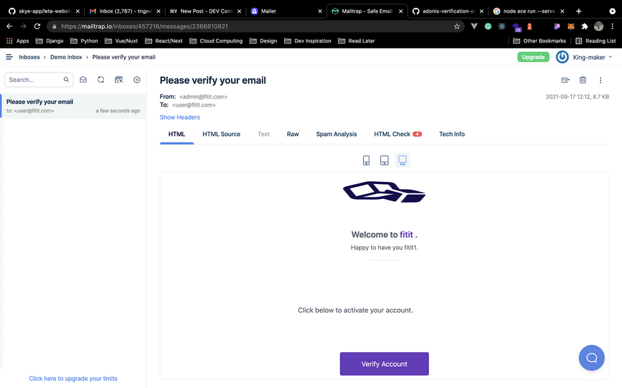 We'll implement the same flow we did in our previous article, where the user receives a notification email upon registration to activate their account, so be sure to check it out!