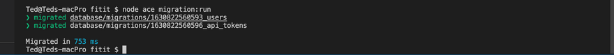 It's worth noting that you might experience an error in migration related to phc-argon not being installed as a dependency. If you come across this, install this library by running npm i phc-argon2, then try running the migration again.