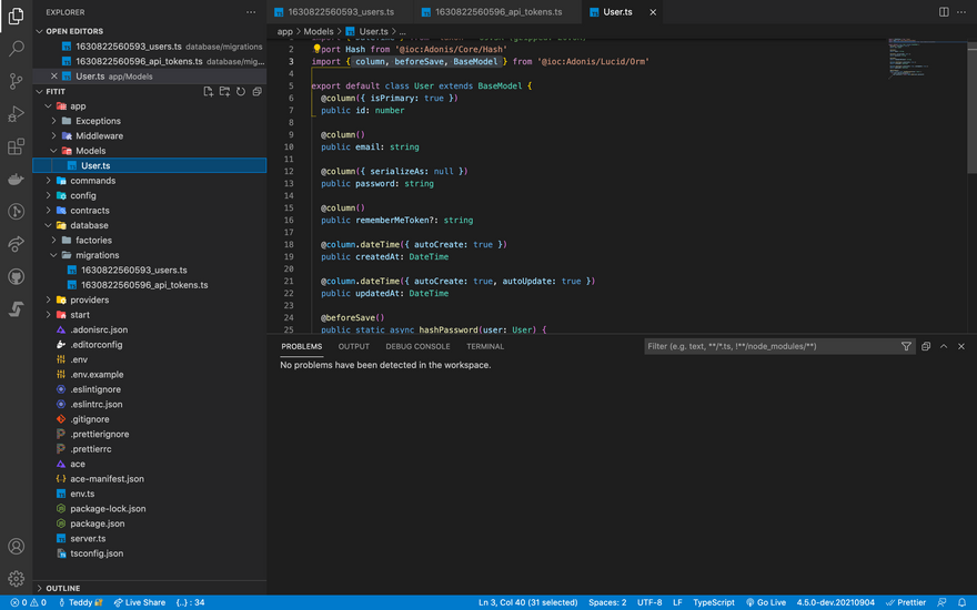 Under the app/models directory, open the User.ts. We'll adjust it to this format.