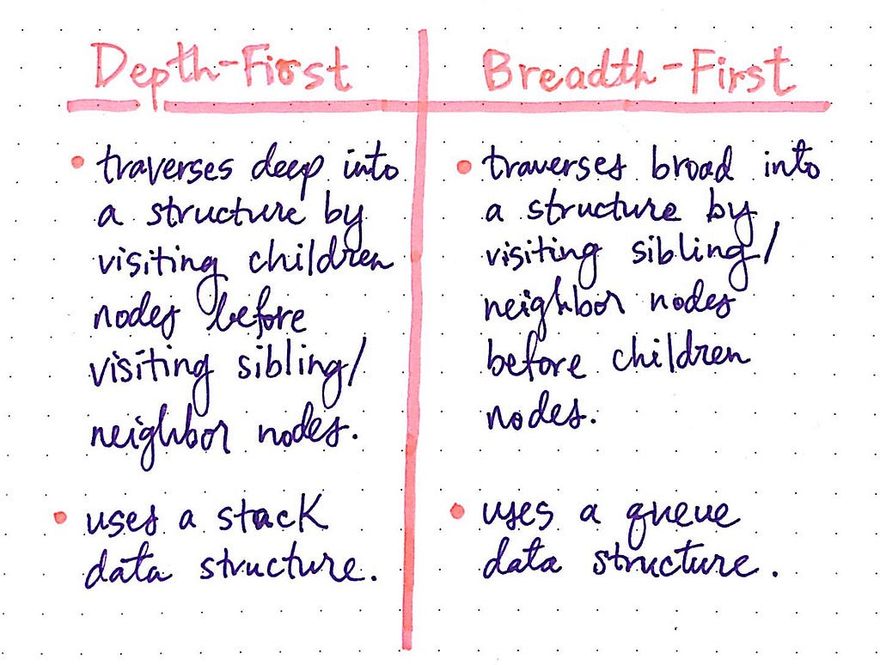 Since we’re already familiar with DFS and BFS in the context of trees, let’s quickly compare the two at a high level before diving into BFS in detail.