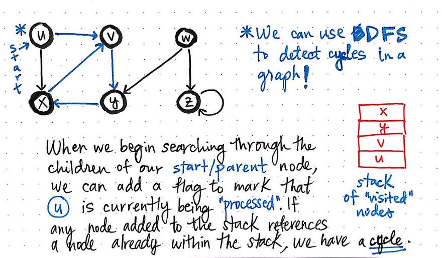 As it turns out, the reason that the depth-first search algorithm is particularly good at detecting cycles is because of the fact that it is efficient at finding backward edges.