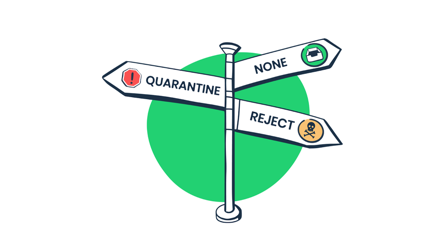 These instructions can also be customized. For example, with a âquarantineâ policy, you could tell the server to send only 10% of emails with a failed check to a spam folder and ignore (ânoneâ) the other 90%. Note that just because you instruct the server on what to do, it doesnât mean that it will follow your advice. But it still puts you in much more control than in the case of DKIM and SPF authentications.