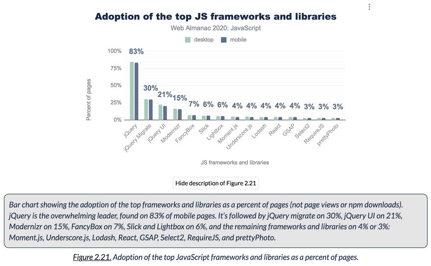 Worth noting that jQuery is still the dominant JS library out there, I'd imagine for two reasons: "legacy" and Wordpress which bundles it.
