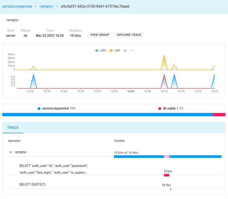 Still using Jaeger/Sentry? Uptrace is an open-source APM tool that supports distributed tracing, metrics, and logs. You can use it to monitor applications and set up automatic alerts to receive notifications via email, Slack, Telegram, and more.