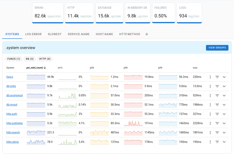 Uptrace can process billions of spans and metrics on a single server and allows you to monitor your applications at 10x lower cost.