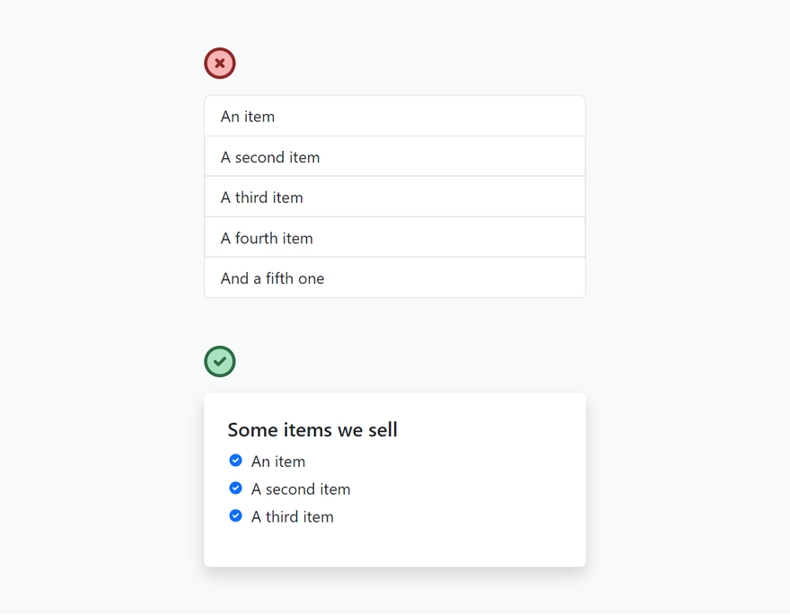 They are ugggggly. Use standard HTML lists. You can even add SVGs instead of standard list bullets to draw more attention.