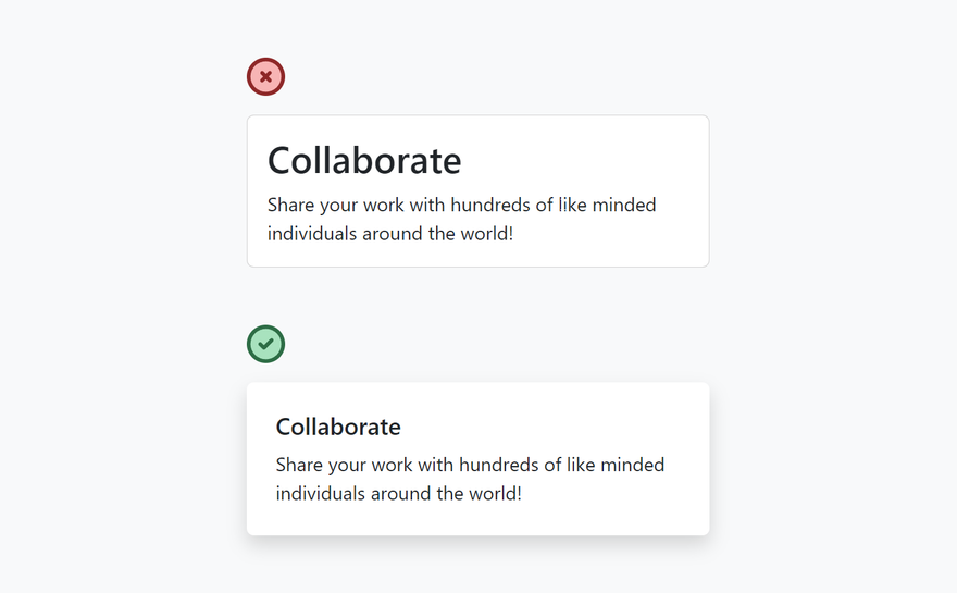 Card borders often feel clunky. Shadows emphasize elements and give the page depth. Use the shadow class to add a shadow to your class and increase the padding with the p-2 class to give it some more internal spacing.