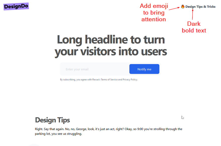 For DesignDo I only have 1 nav link and I’ll be using the fire emoji to bring some more attention to it.