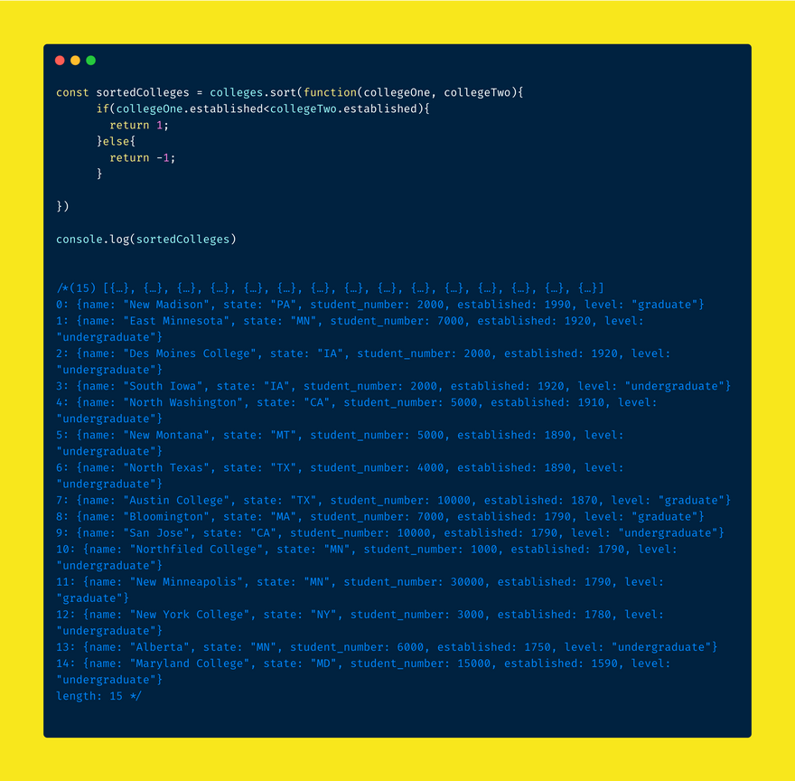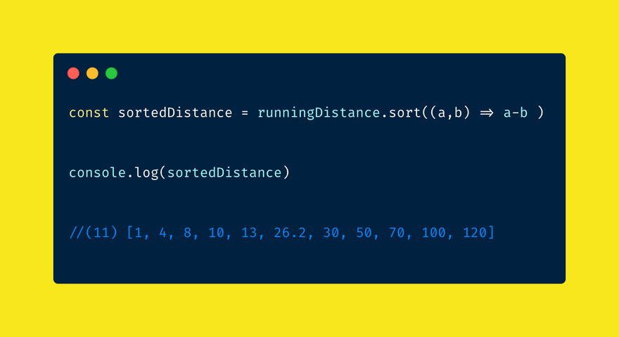 Here is another example. This time using arrow function to sort the running distance in ascending order.