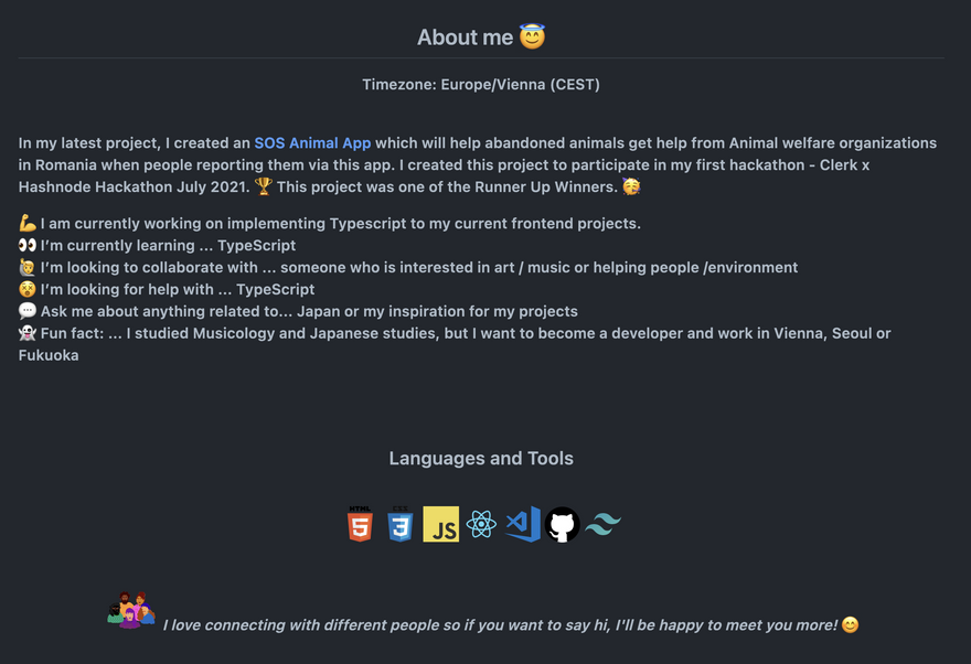 So if you're in the same situation as I was a few months ago and struggling with your personal website, you can at least create a nice GitHub profile to have something to show for it.