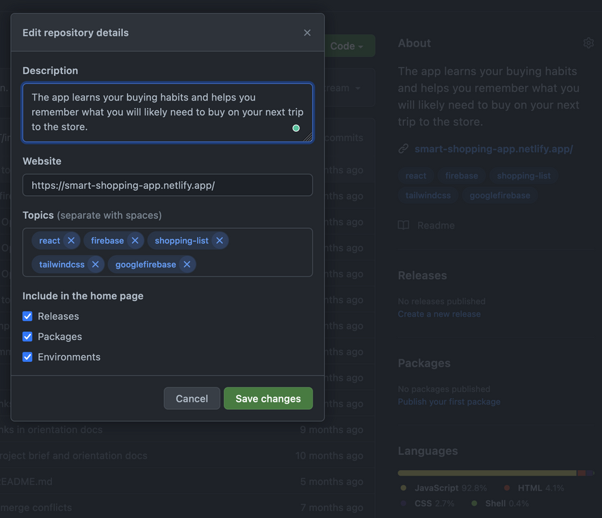 The text is taken from the description in your repository in the About section on the right (in the description you should write what the project is about and what languages you used).