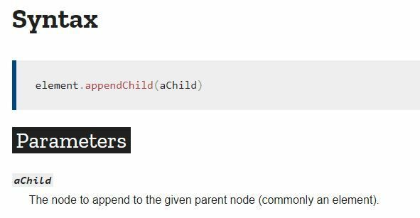 You'll notice that the insertBefore() method has two parameters. If you read the documentation, you'll learn that we need to call this method on the "parent element" that we want to insert the new element in. In this case, the "parent element" is mainBody (look at the DOM Tree diagram earlier in this post). The first parameter is the element you want to insert, which is newElem. And the second parameter is the "reference element", which represents the element you want to insert your new element before. In this case, that is secondParagraphElem.