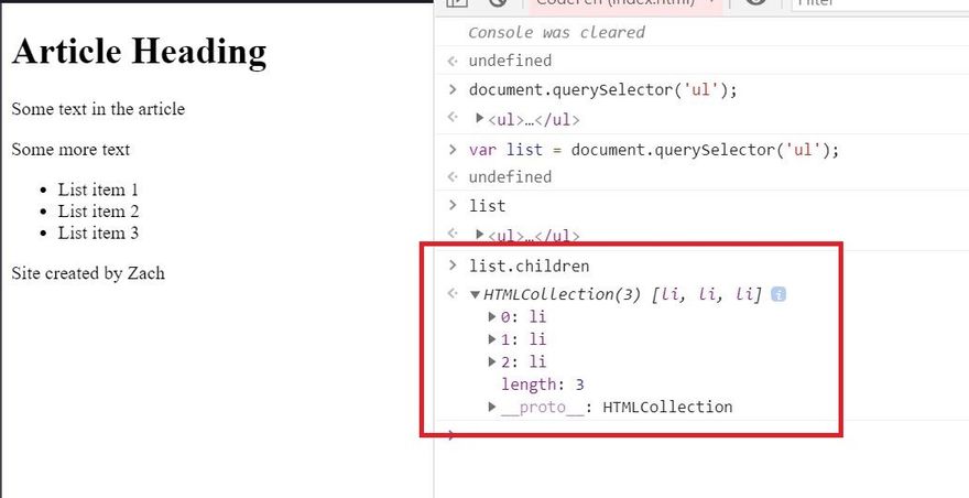 This is much better. The pItems variable will be a NodeList, which is similar to HTMLCollection which we looked at earlier. We can use the item() method on it to select the second p element.